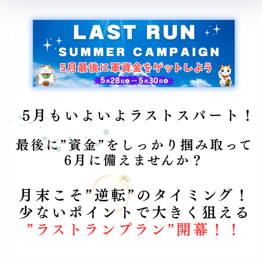 5月最後に軍資金ゲットしよう!!