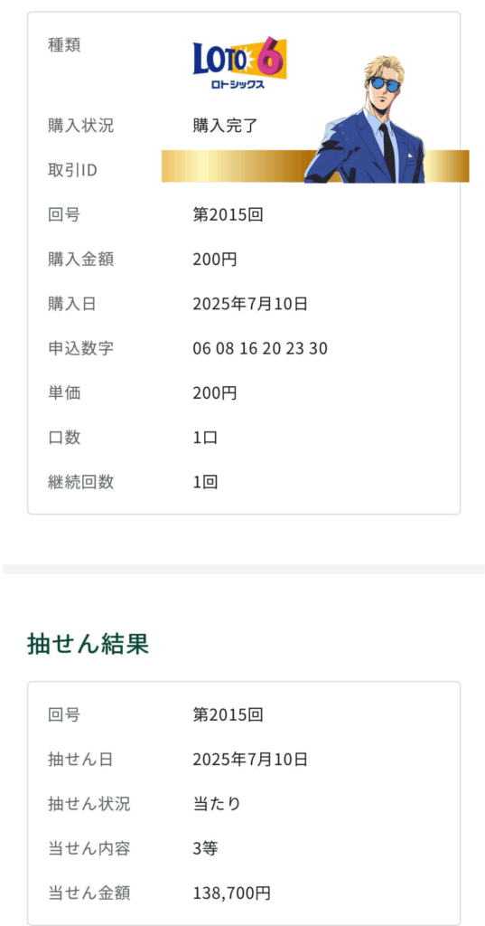 当選金合計:138,700円