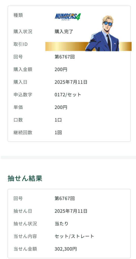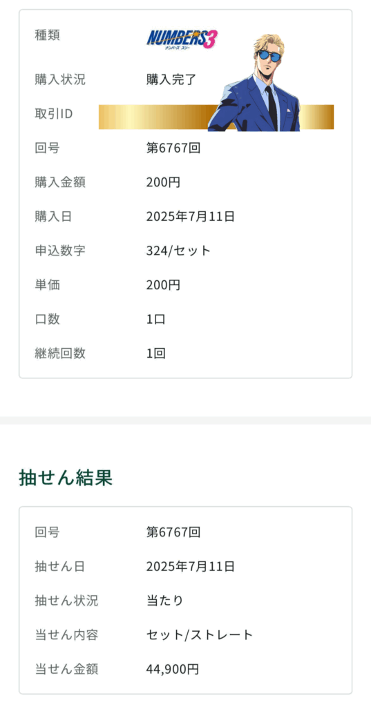 ナンバーズ3で当選!!