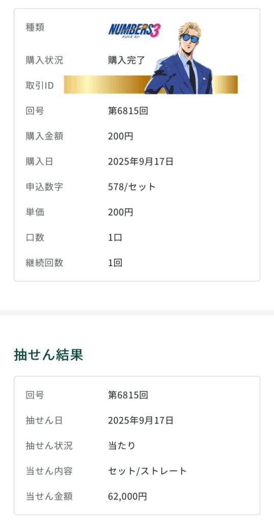 ナンバーズ4セットストレート当選!!