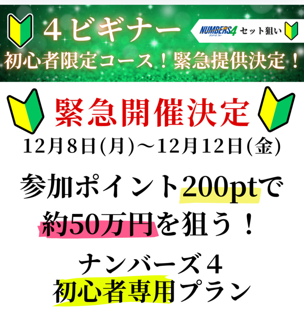 ・4ストレート予想 参加費用:800pt→400pt(完売)