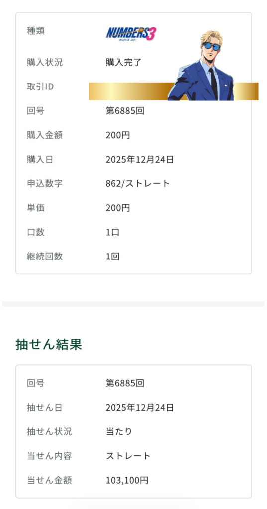 ナンバーズ4並プランで当選だった!