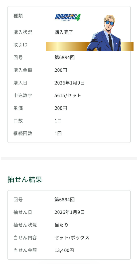・ナンバーズ4上 参加費用:900pt→400pt❌