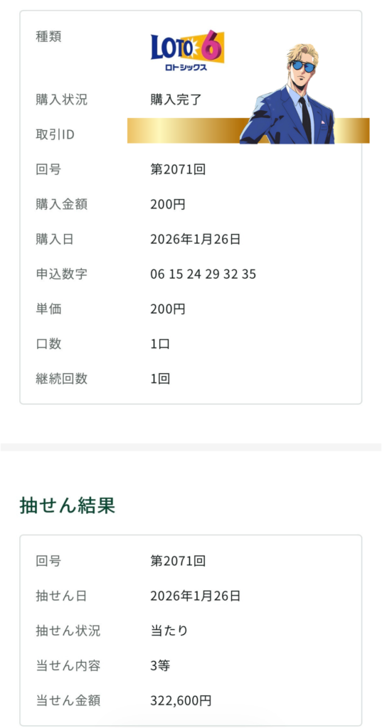 ロト6で3等当選!!