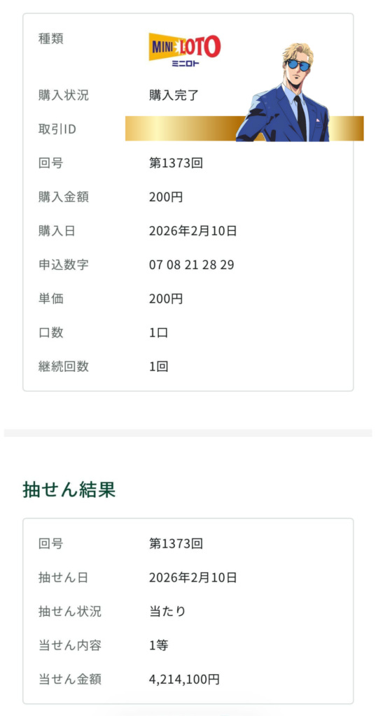 当選金合計:4,214,100円
