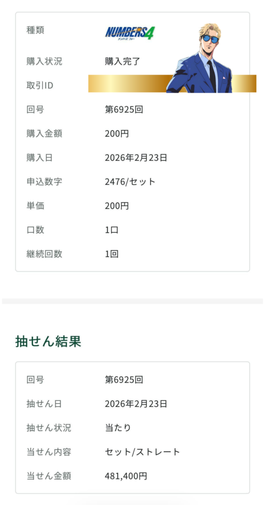 ・ナンバーズ4上 参加費用:900pt→400pt(完売)