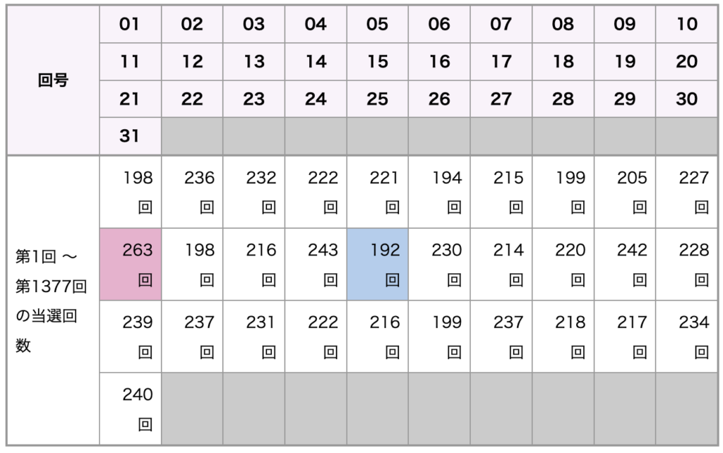 各数字の全回号の当選回数